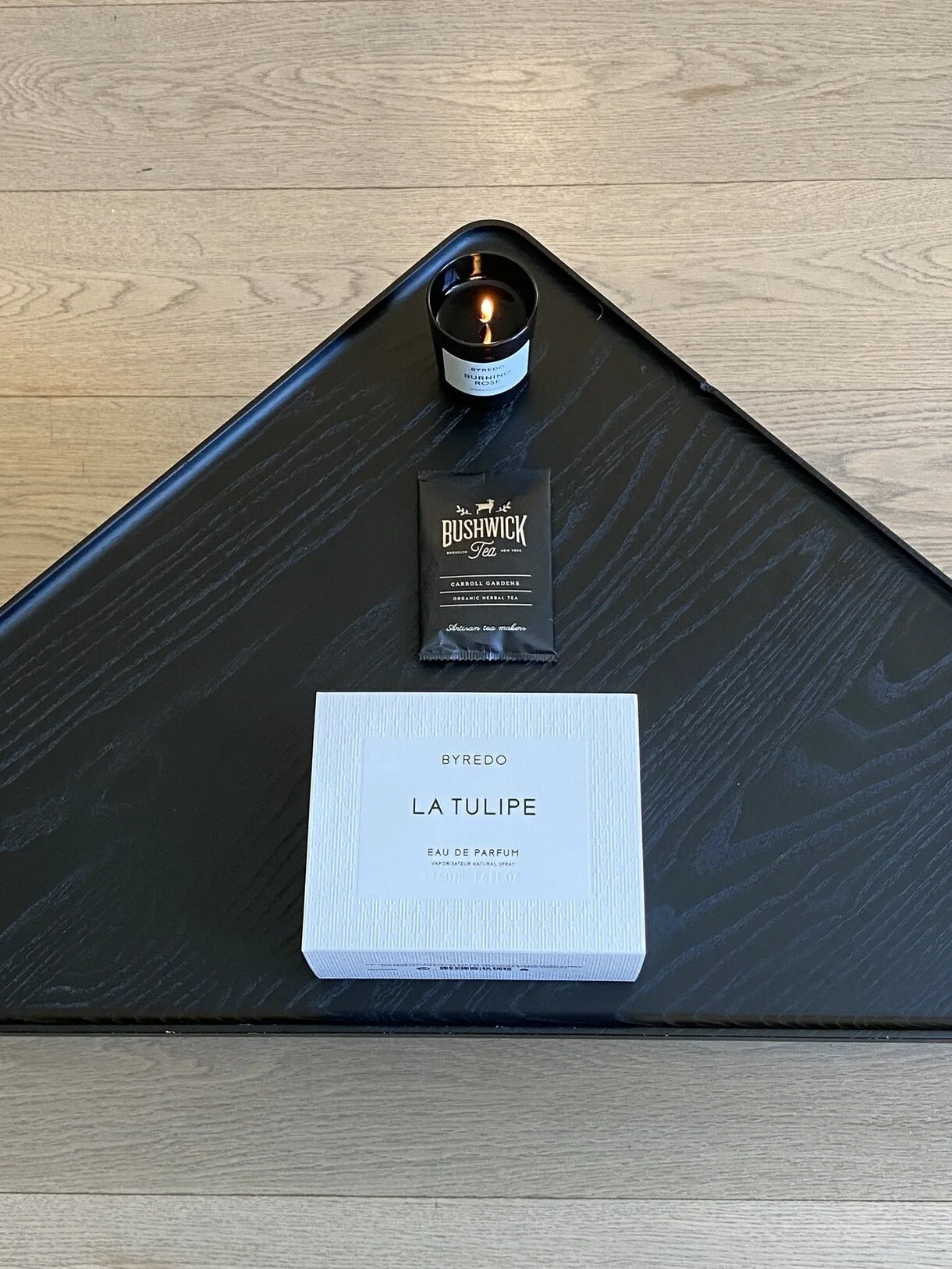 my meditation candle, soothing herbal tea & a spring scent!